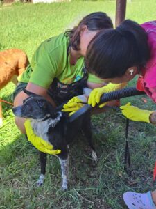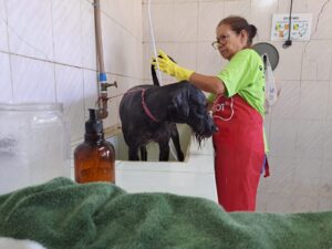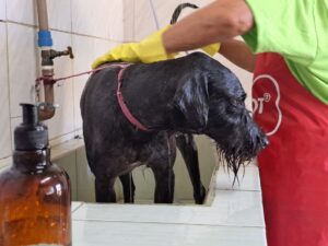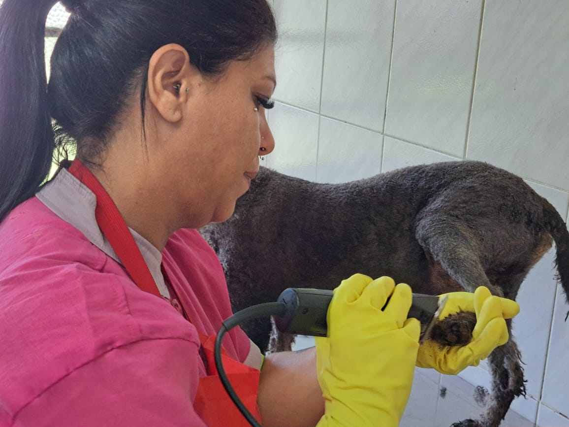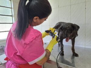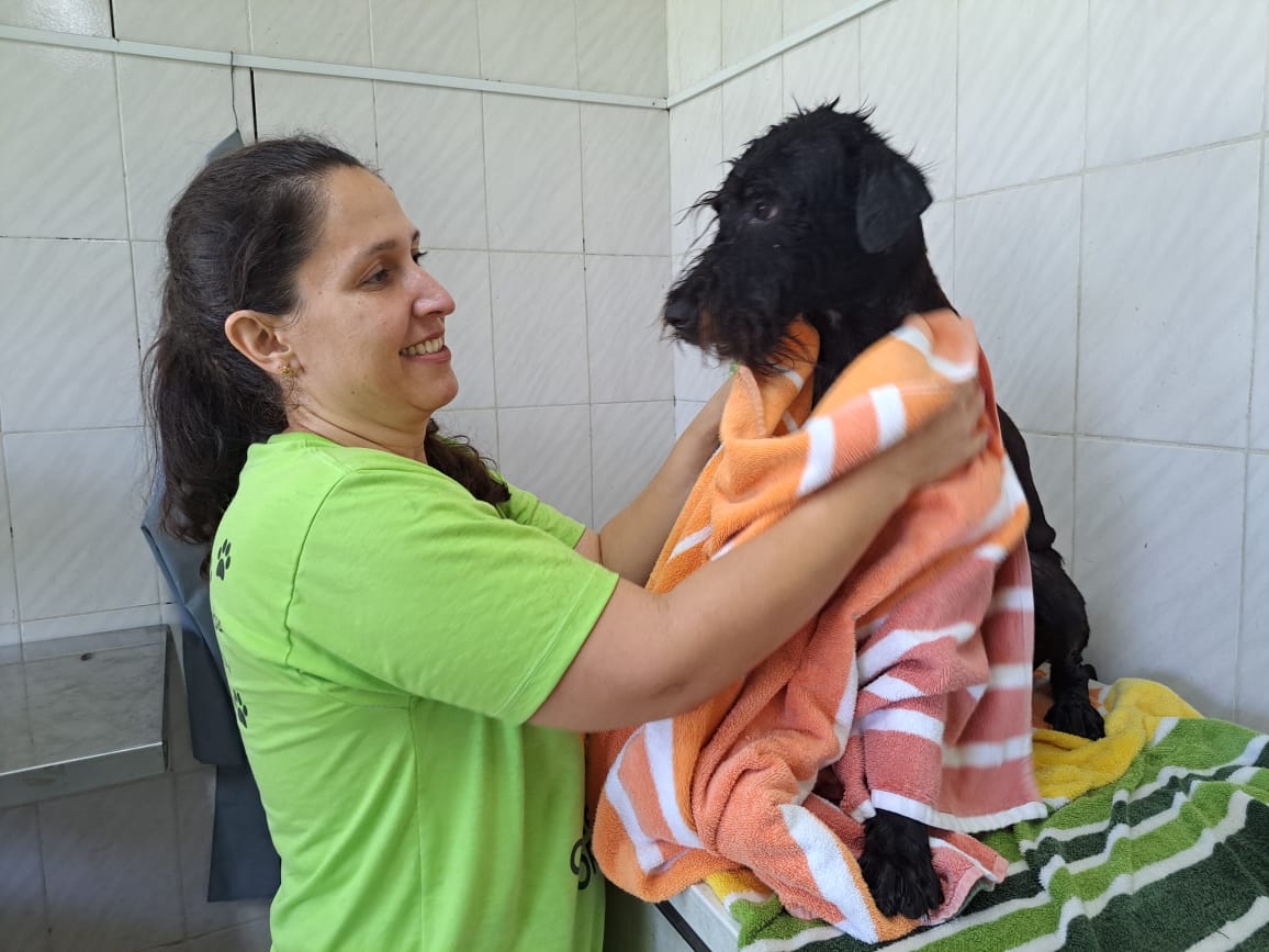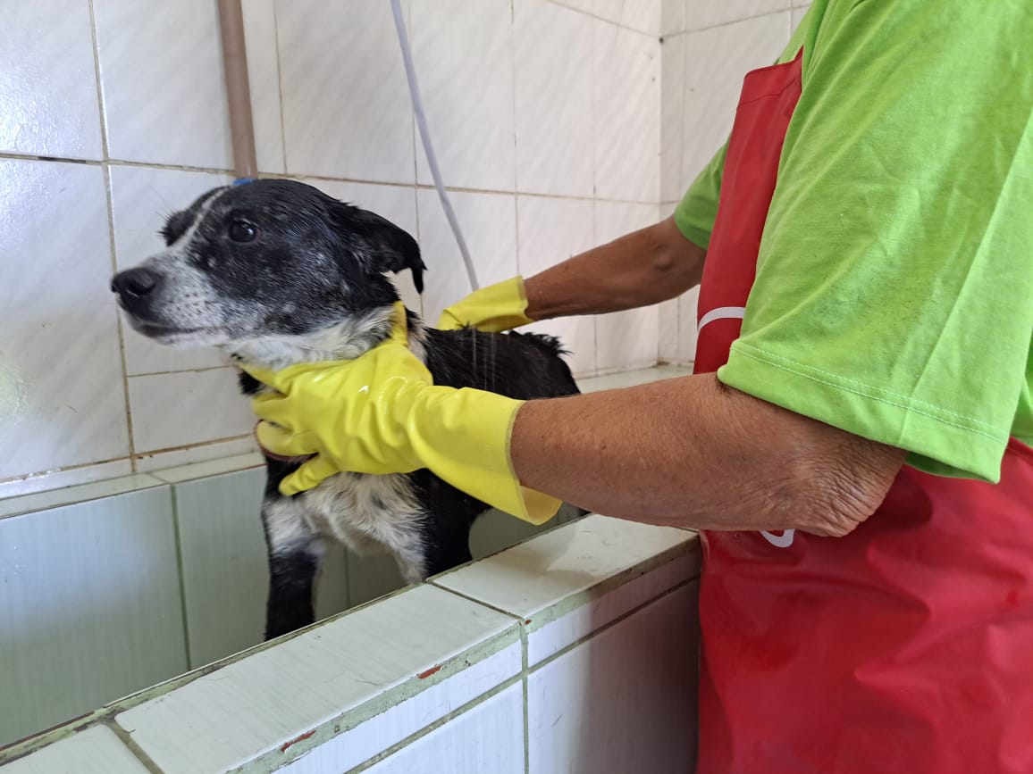 Além de receberem banho e tosa, corte de unhas, limpeza de ouvido, eles também tiveram a oportunidade de ter um passeio no entorno da unidade. São animais que vivem em suas baias por longos períodos, aguardando um lar definitivo, e esses momentos especiais proporcionam bem-estar a eles.