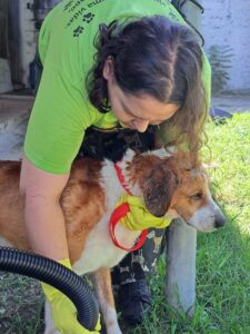 Um dos animais que recebeu o serviço completo foi o idosinho Ray Charles, um cãozinho carinhoso e que adora também receber carinho. Ele foi tosado por uma das voluntárias da ONG, ganhou banho, corte de unhas e limpeza do ouvido. Outro cachorro que recebeu atenção e muito carinho foi Tobias, que também pôde se refrescar com um banho.