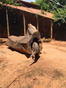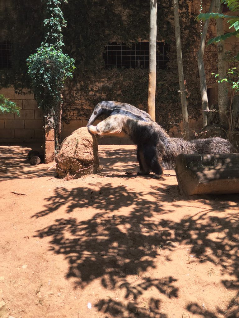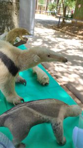Além disso, foi realizada uma atividade de enriquecimento ambiental com a onça-pintada. Foi oferecida uma capivara de papelão com atrativos olfativos para estimular a curiosidade e os instintos do animal. Posteriormente, foi oferecido um cupinzeiro para o tamanduá-bandeira para estimular os sentidos e a força do animal, simulando a busca pelo alimento na natureza.
