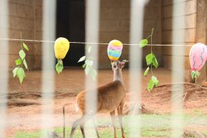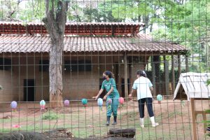 Não é somente a escolha do alimento que é importante. Eles são elaborados de uma forma diferente, que aguça a curiosidade dos animais e, também, podem ter alguns artifícios, como os que foram entregues ao veado-catingueiro, com folhas de amoreira saindo de uma bexiga forrada com papel-machê. “Por instinto, eles não consomem o papel, mas o estímulo de buscar, ali dentro, os alimentos é uma espécie de desafio, importante também para o animal”, descreveu a bióloga do Zoo de Sorocaba, Peônia Pereira.