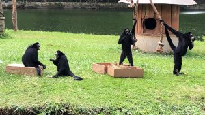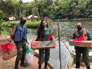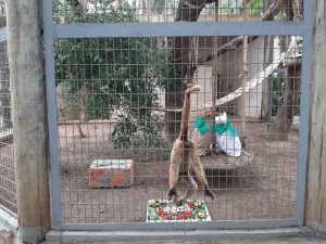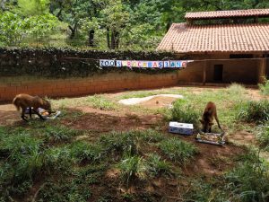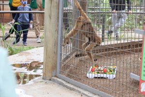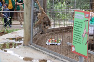 As araras-canindés, por exemplo, receberam um varal de frutas picadas. Já, os exemplares de muriqui-do-sul ganharam um bolo confeccionado com frutas e ração dos primatas, além de presentes com frutas picadas e feno.